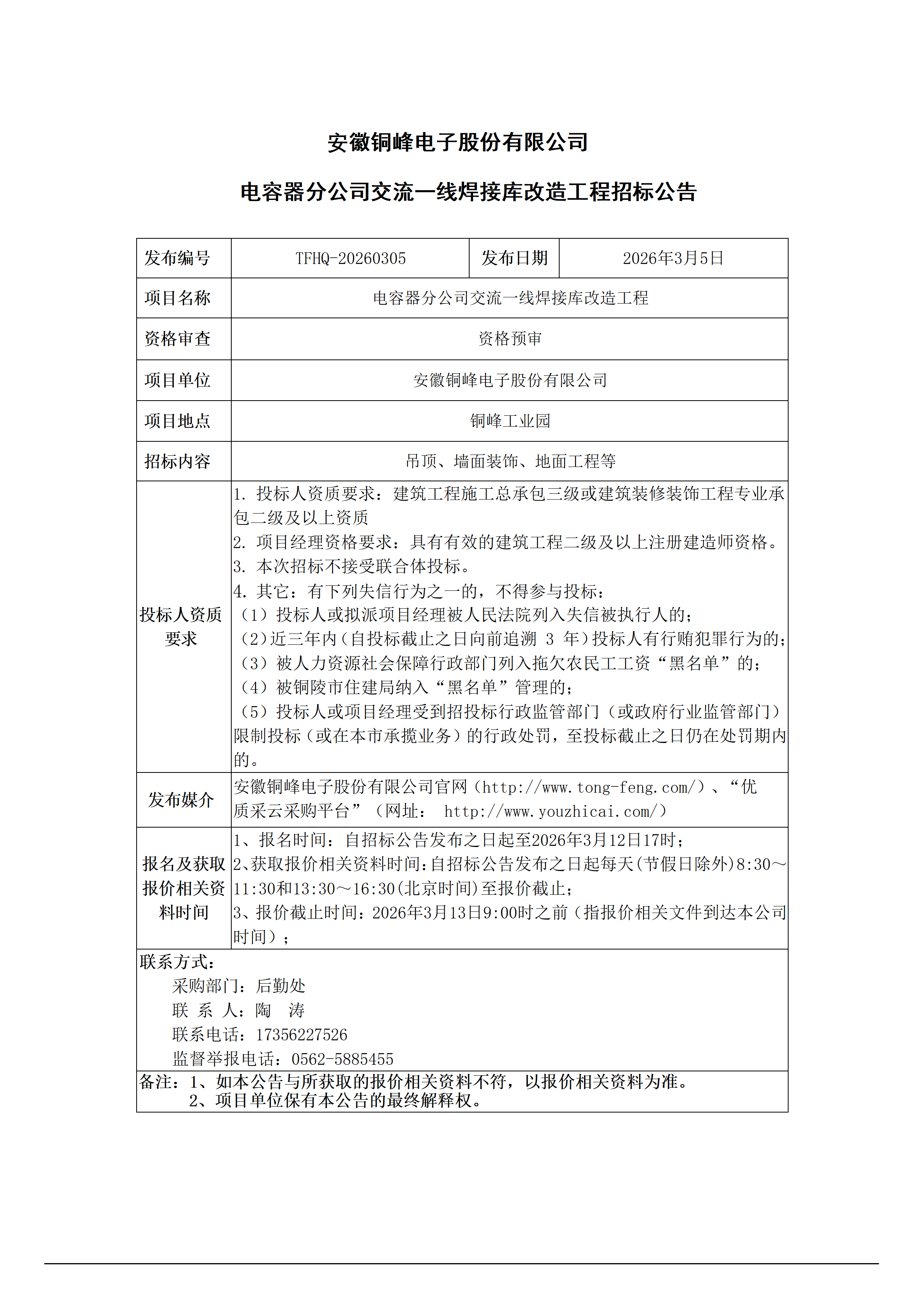 安徽銅峰電子股份有限公司 (電容器分公司交流一線焊接庫改造工程 招標(biāo)公告)_01