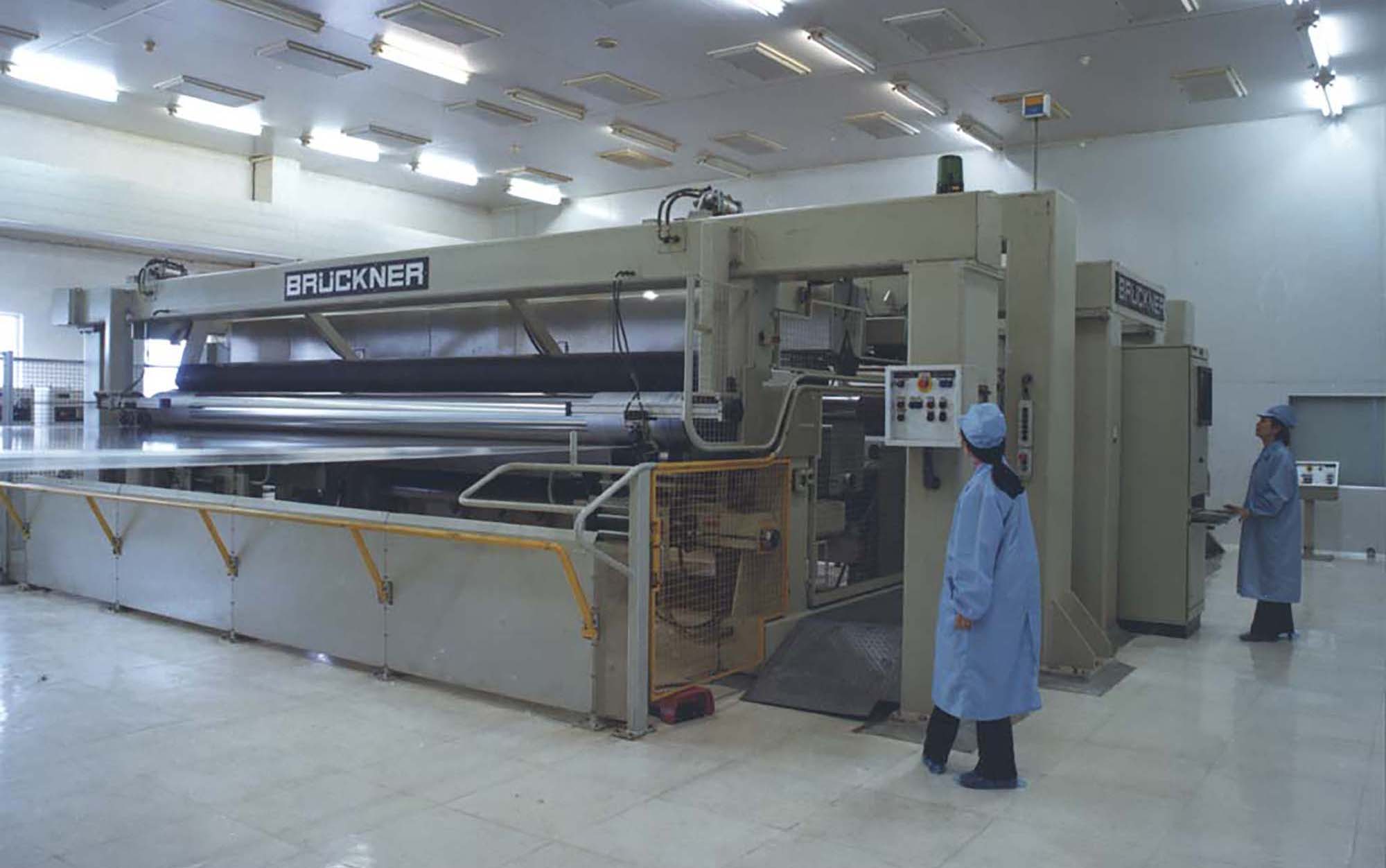 銅峰“老一線”于1989年建成投產(chǎn)。上世紀(jì)80年代,當(dāng)時國內(nèi)電容器用聚丙烯膜幾乎完全依賴進(jìn)口,嚴(yán)重制約了我國電容器等相關(guān)產(chǎn)業(yè)的發(fā)展。銅峰公司前身銅陵市無線電元件二廠積極響應(yīng)國家需求,決定從國外引進(jìn)雙向拉伸電容器用聚丙烯膜生產(chǎn)線。1985年項目啟動,經(jīng)過一系列籌備工作,1986年獲得國家計委批準(zhǔn)立項,并被列入國家 “七五” 機械電子工業(yè)重點技改項目。1988年,主線和相關(guān)輔助設(shè)備成功引進(jìn)。經(jīng)過一年多的緊張建設(shè),1989年生產(chǎn)線正式投產(chǎn)?!袄弦痪€”的建成投產(chǎn),是銅峰發(fā)展史上具有重要意義的轉(zhuǎn)折點。該線加速了銅峰公司產(chǎn)品結(jié)構(gòu)調(diào)整和轉(zhuǎn)型步伐,并由此形成了全國唯一的“電工三膜”(電容薄膜、金屬化膜和薄膜電容器)一條龍的生產(chǎn)格局,使企業(yè)的經(jīng)濟(jì)規(guī)模和技術(shù)水平躍上一個新臺階。