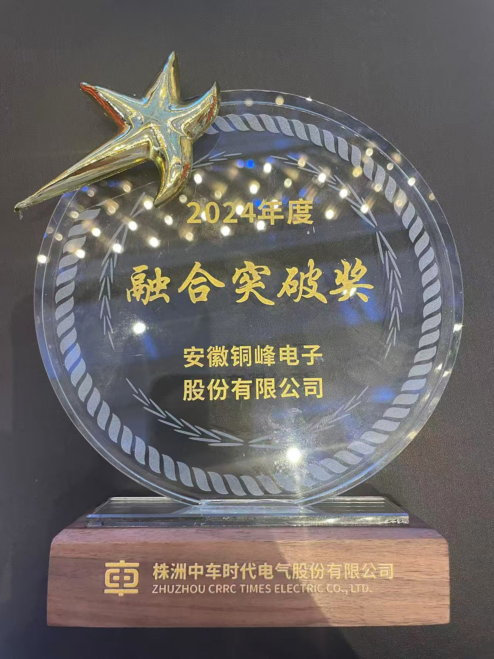 合作共贏,公司榮獲中車時代電氣“2024年度融合突破獎”